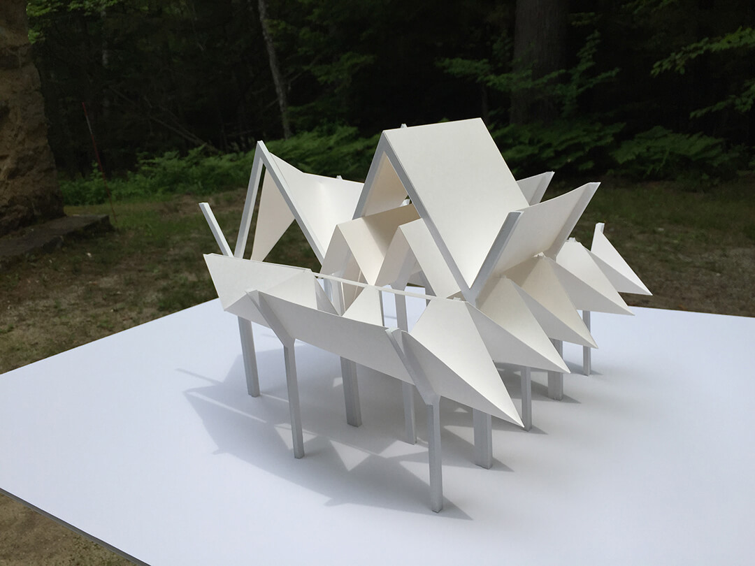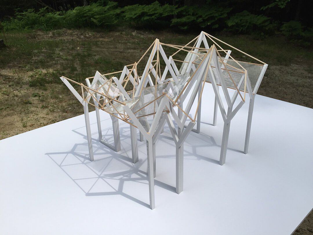 Co-Occupancy is a series of explorations for new building ‘typologies’ that aims to incorporate wildlife habitat into the built environment. In an effort to draw attention to the critical importance of urban ecologies, and our interconnectedness with non-human species, the design includes delineated zones for flora and fauna, as well as zones for human occupancy. Bats and bird, for example, could live in expanded, volumetric roof conditions. These are conceived as sheltered but accessible spaces of varying dimensions and degrees of insulation, with cavities for nesting, and structures for perching. Snakes, salamanders, and similar creatures could occupy a thickened “foundation” condition, composed of a structural mesh cage that is formed to hold closely-packed masses of boulders and large rocks. This project imagines fundamental architectural components – such as roof and foundation – in terms of cross-species occupancy, and begins to suggest new spatial, visual, and tactile ways to reconsider our constructed environment.