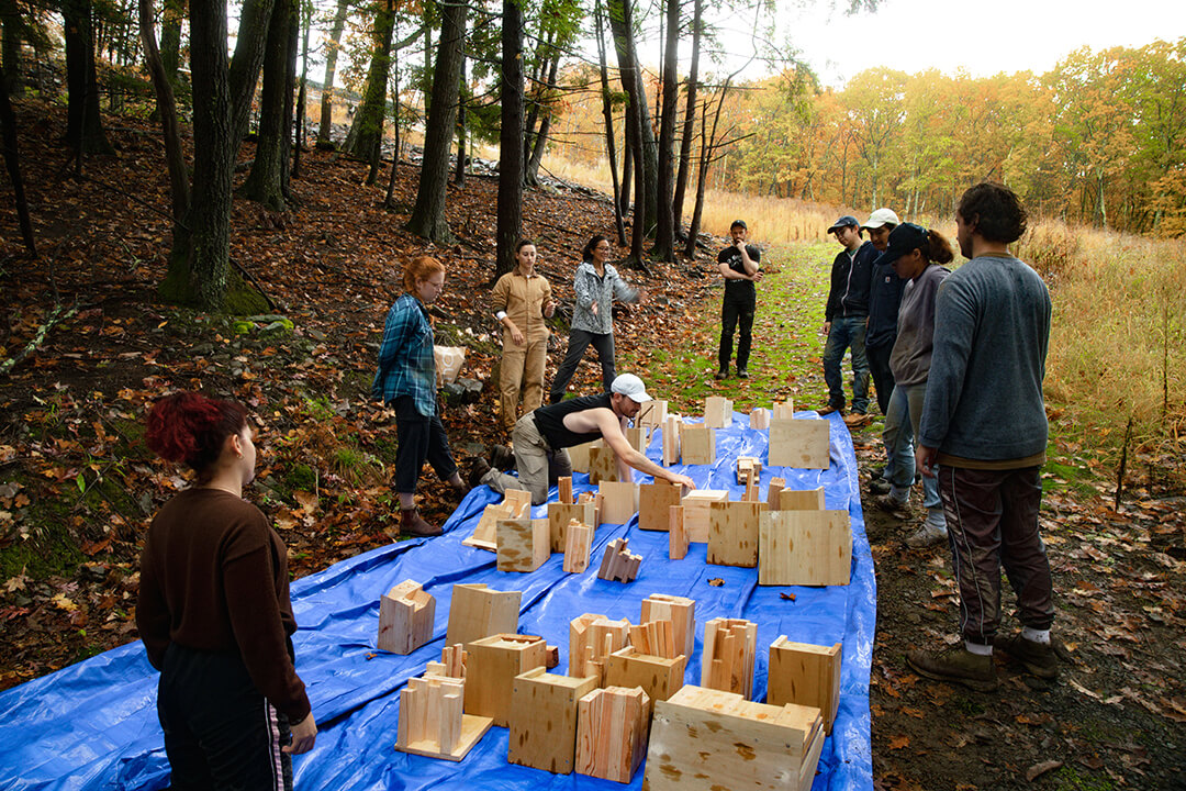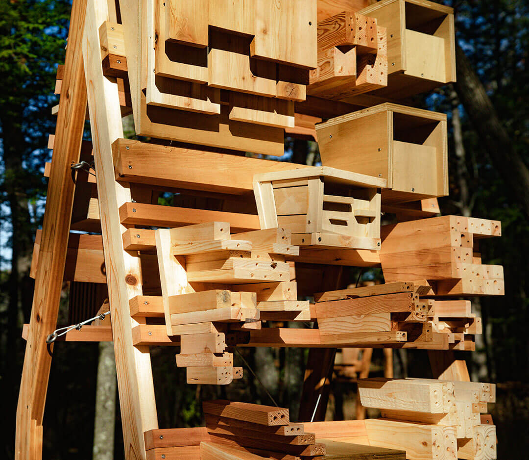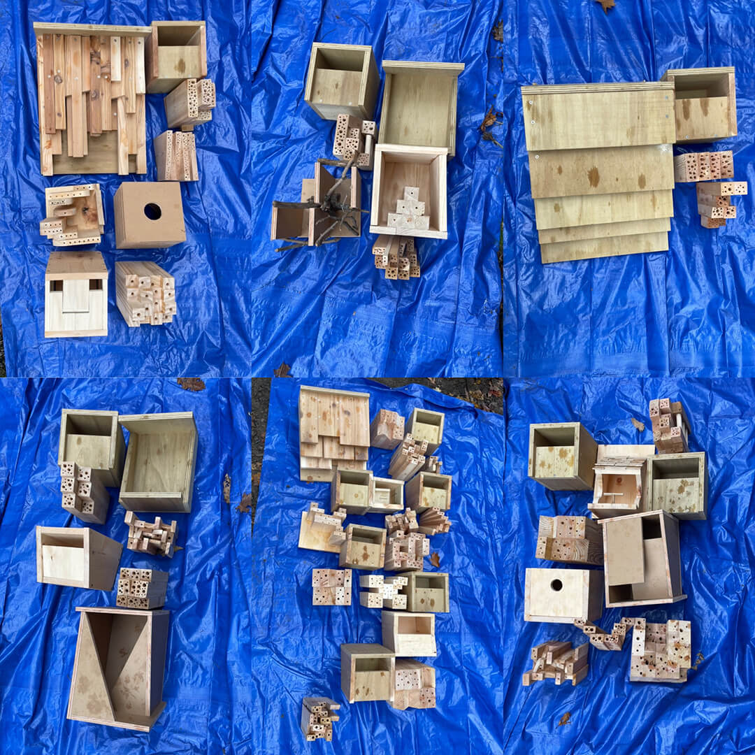 Habitat boxes designed and fabricated by MLA students at Pratt School of Architecture: Nell Heidinger, Chase Mitchell, Daniel Montoya, Joyce Hsu, Noelle LaDue, Ana Julia Chiriboga, Tiger Lee, Patrick Belli; with Pratt studio instructor: Cathryn Dwyre. Additional habitat boxes fabricated by Samendy Brice, Kat Cheng, Nicole Sarmiento.
