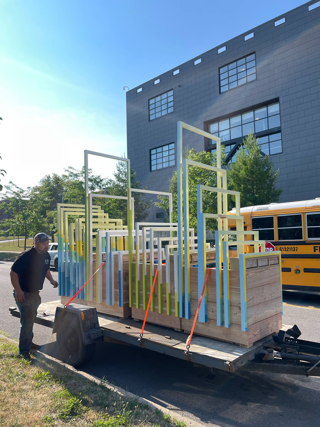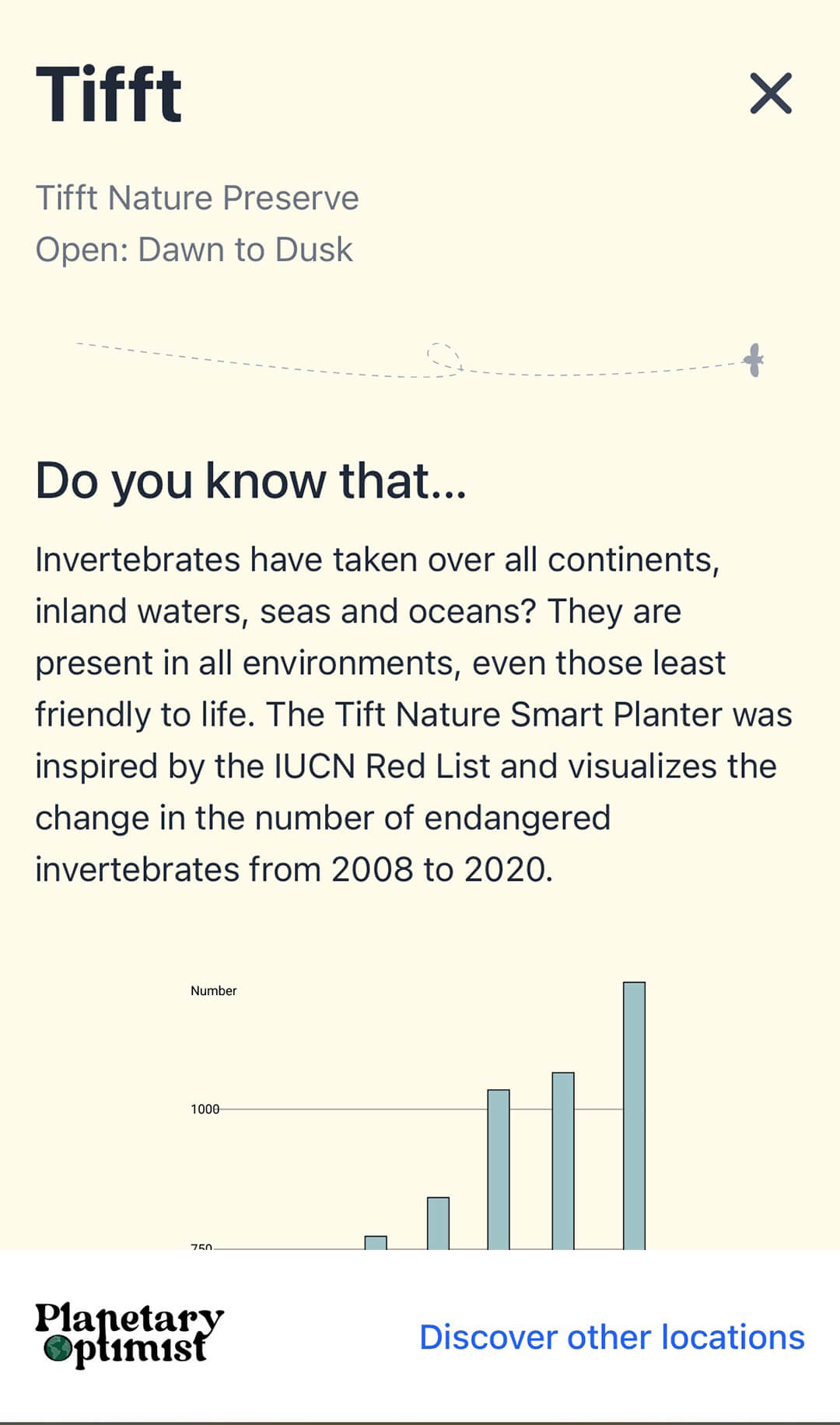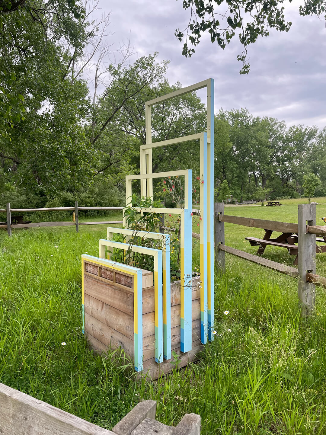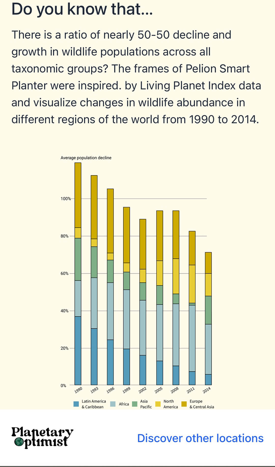 During 2022 and 2023, the planters also hosted digital documentation technology to gather data, contributing to understanding biodiversity at each site. The design of the planters didactically reflect bar graphs that illustrate conditions of global biodiversity loss. The colorful frames on this planter are a representation of data from the Living Planet Index, visualizing changes in wildlife abundance in different regions of the world from 1990 to 2014.