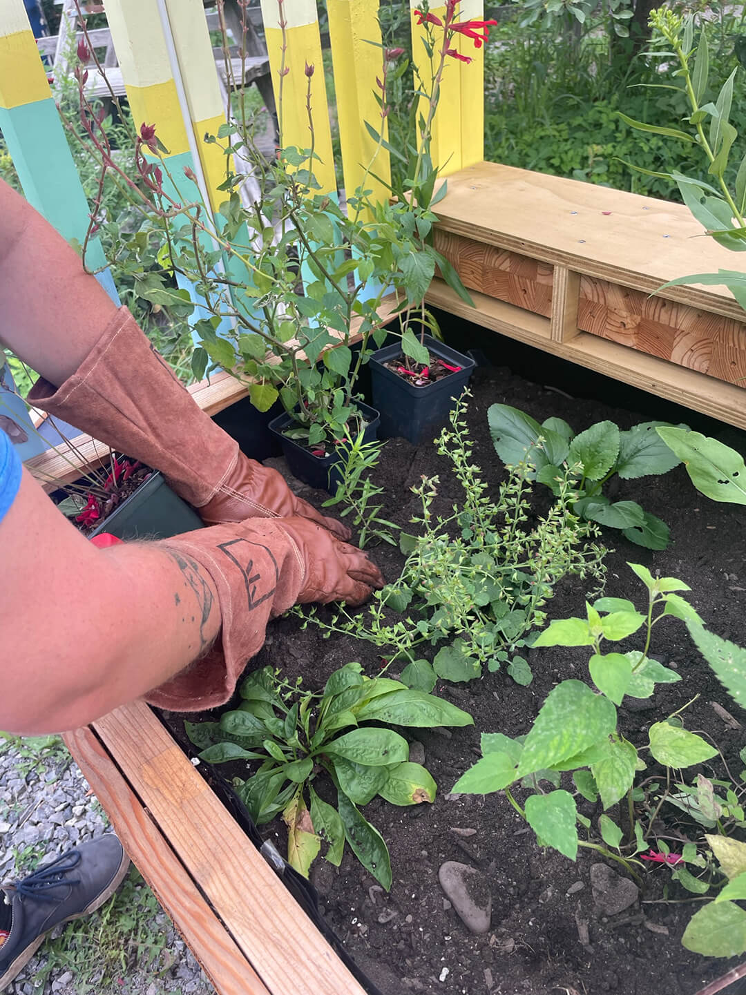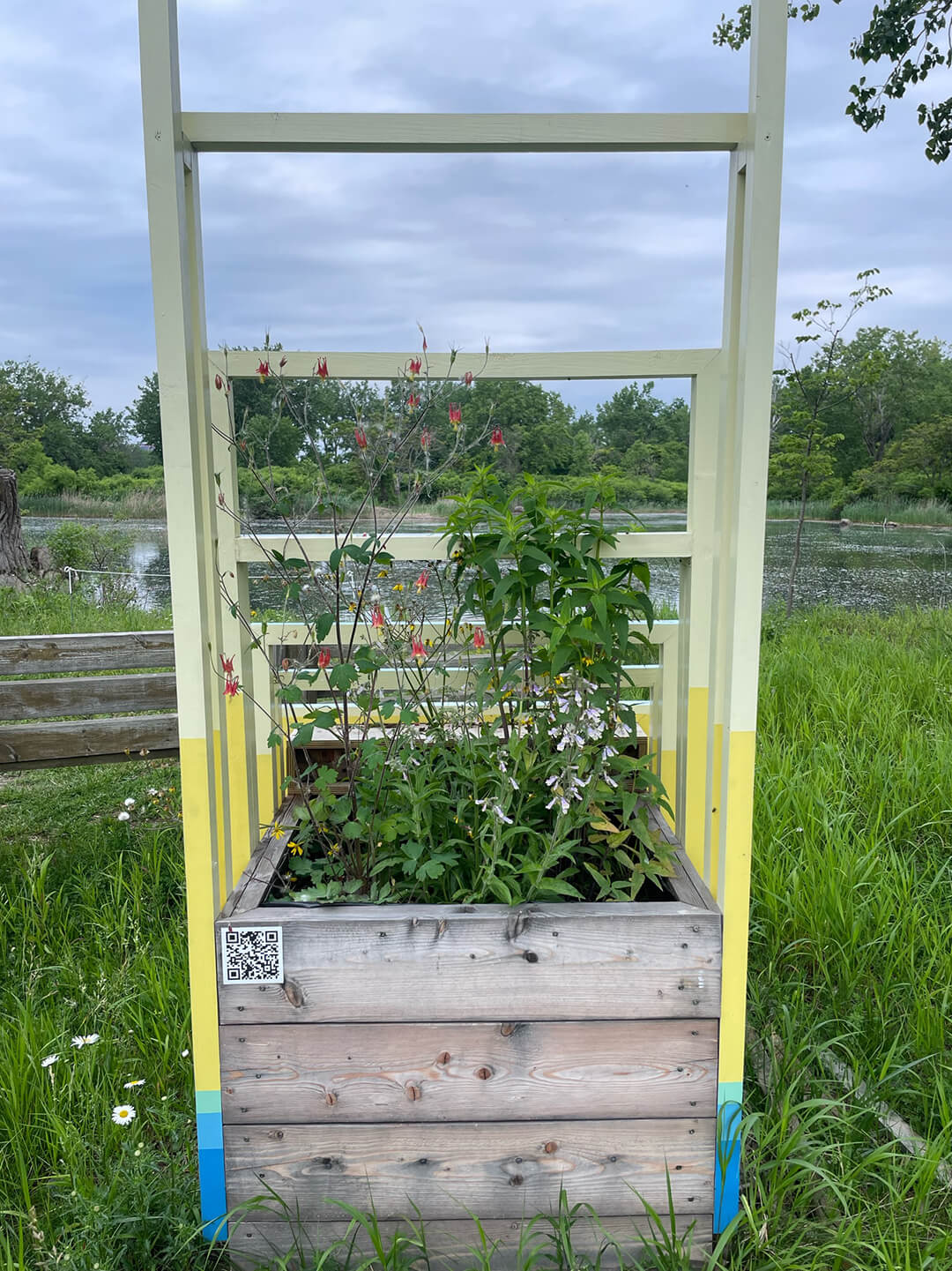 Each planter hosts a selection of native pollinator plants within the planting box, including: