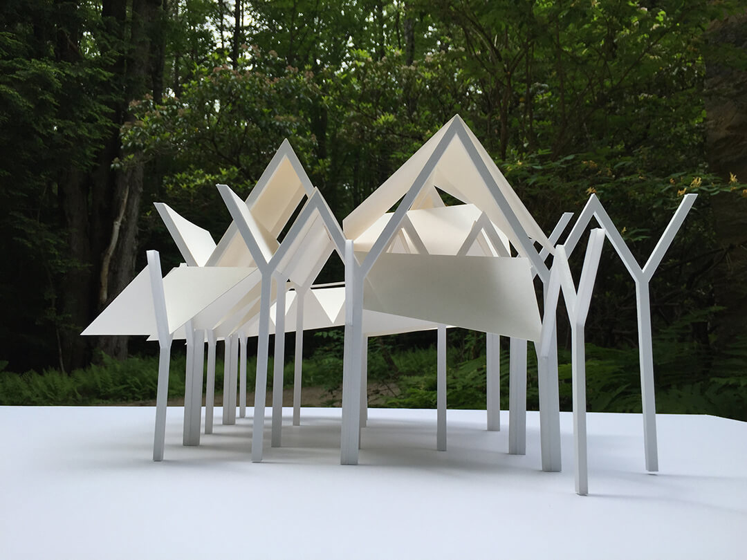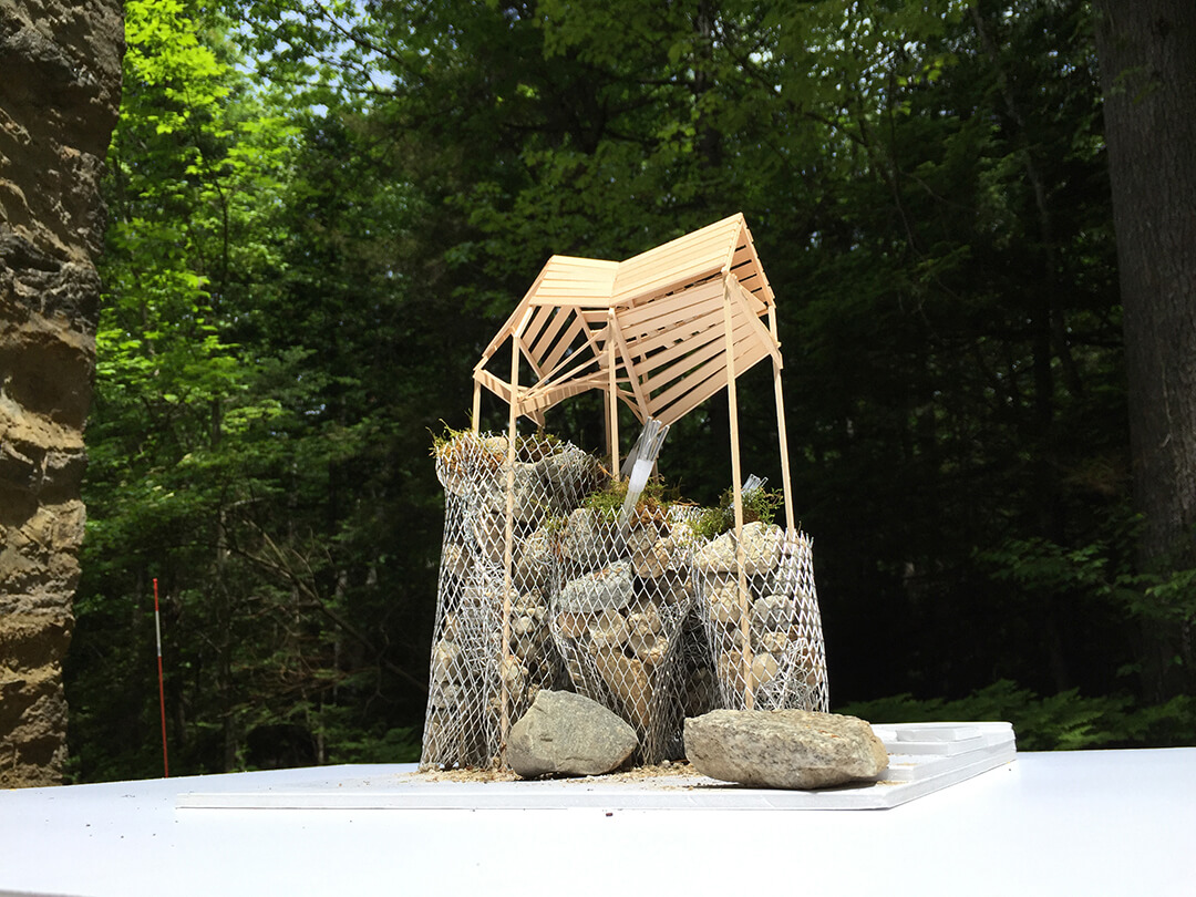 Co-Occupancy is a series of explorations for new building ‘typologies’ that aims to incorporate wildlife habitat into the built environment. In an effort to draw attention to the critical importance of urban ecologies, and our interconnectedness with non-human species, the design includes delineated zones for flora and fauna, as well as zones for human occupancy. Bats and bird, for example, could live in expanded, volumetric roof conditions. These are conceived as sheltered but accessible spaces of varying dimensions and degrees of insulation, with cavities for nesting, and structures for perching. Snakes, salamanders, and similar creatures could occupy a thickened “foundation” condition, composed of a structural mesh cage that is formed to hold closely-packed masses of boulders and large rocks. This project imagines fundamental architectural components – such as roof and foundation – in terms of cross-species occupancy, and begins to suggest new spatial, visual, and tactile ways to reconsider our constructed environment.